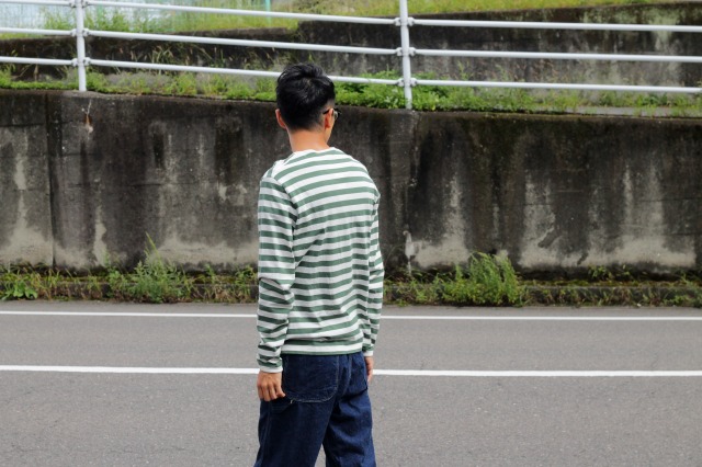 で、中に着るものはカットソー一本!それもシンプルにボーダーか無地!ロゴものなら画像のようなストイックなデザインのものを。